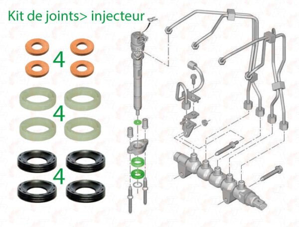 > Turbo Renov vous propose le kit qui permet de se conformer aux précautions spécifiques prescrites par le constructeur pour tout remplacement d’Injecteurs, montage : Bosch.